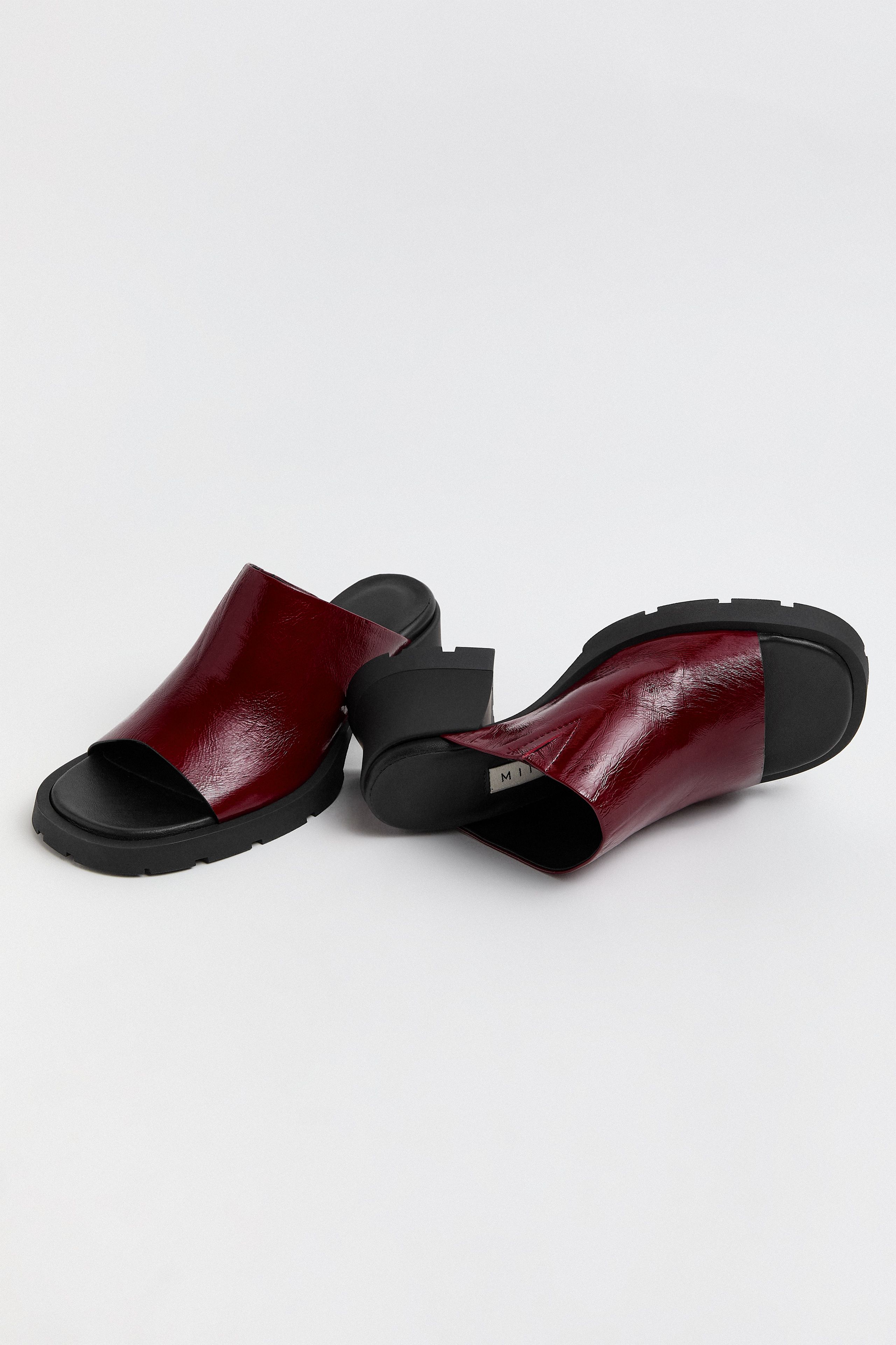 +2Ini SandalsBurgundy Shiny Leather$335ColorIni Sandals - Black LeatherIni Sandals - Brown Shiny LeatherIni Sandals - Burgundy Shiny LeatherSelect sizeAdd to bagSize GuideFind in StoreProduct InfoDescriptionVegetable tan cow leather liningUltra-cushioned memory foam padded insoleHeel Height: 6.5cmMaterialsShipping & returns