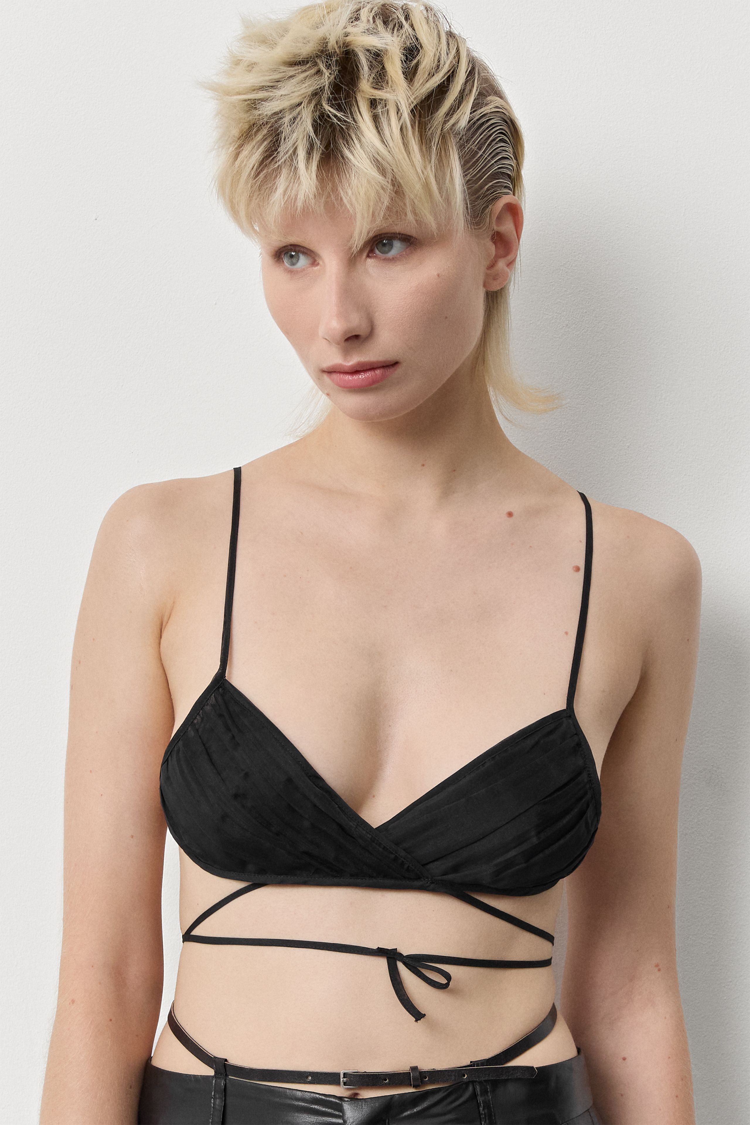 - Wrap over tie-around bra