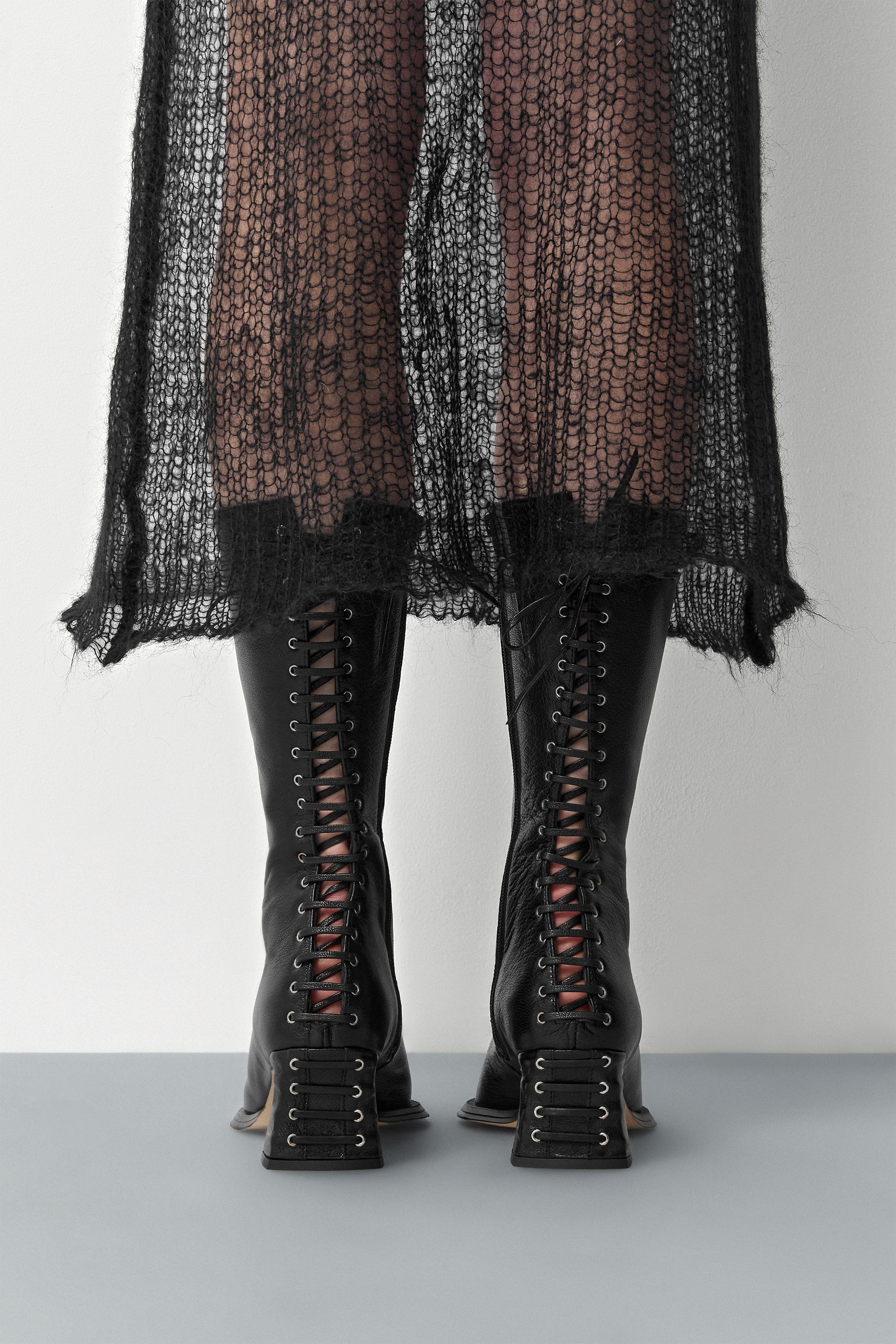 +4Shelley BootsBlack Lace Leather$630ColorShelley Boots - Black Lace LeatherShelley Boots - Brown Lace LeatherSelect sizeAdd to bagSize GuideFind in StoreProduct InfoDescriptionVegetable tan cow leather liningUltra-cushioned memory foam padded insoleRubber-invected toeHeel Height: 6 cm*Includes a replacement pair of heel caps in the shoe box.MaterialsShipping & returnsLoading...