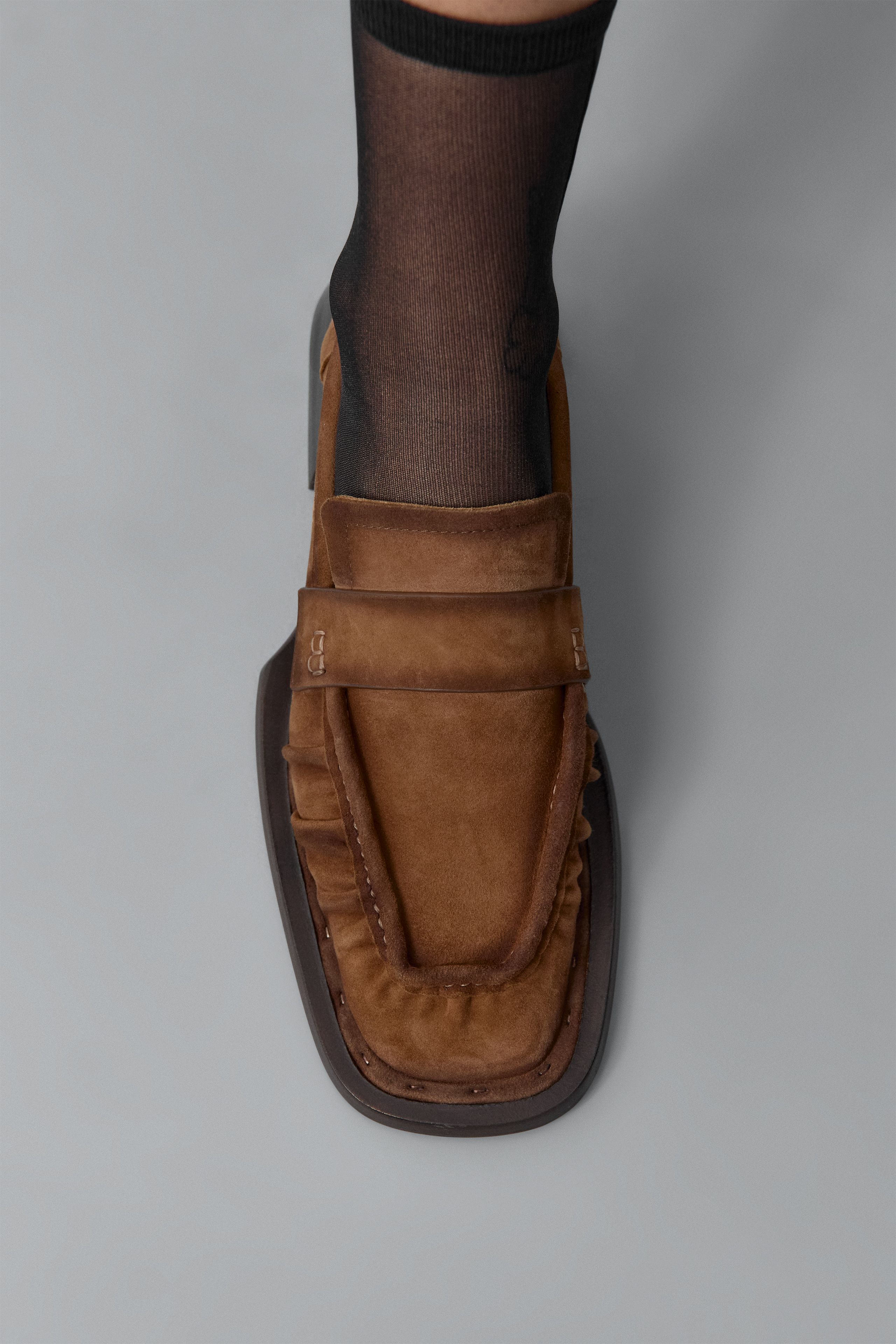 +5Airi LoafersTan Suede Leather€425ColorAiri Loafers - Cow Print Ponyhair LeatherAiri Loafers - Tan Suede LeatherAiri Loafers - Black LeatherSelect sizeAdd to bagSize GuideFind in StoreProduct InfoDescriptionVegetable tan cow leather liningUltra-cushioned memory foam padded insoleRubber-invected toeHeel Height: 3 cm*Includes a replacement pair of heel caps in the shoe box.MaterialsShipping & returnsLoading...