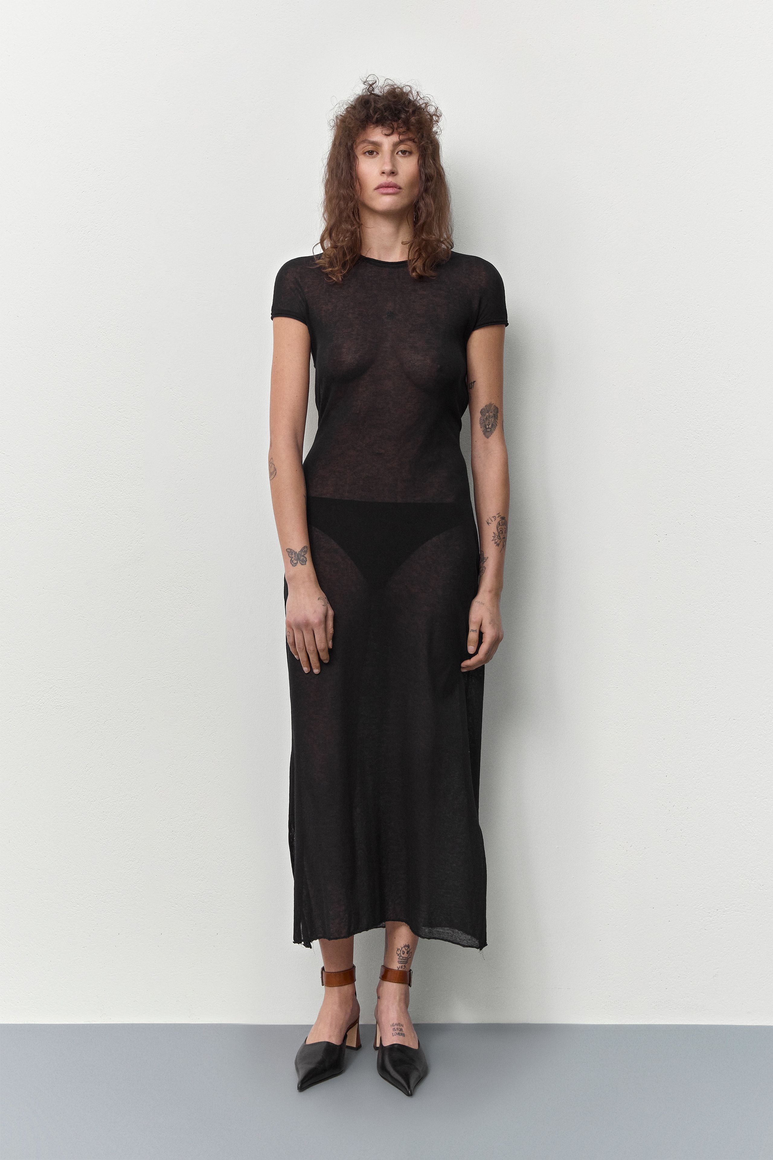 +5Buffy DressBlack Sheer Organic Cotton€470ColorBuffy Dress - Ecru Sheer Organic CottonBuffy Dress - Black Sheer Organic CottonSelect sizeAdd to bagSize GuideFind in StoreProduct InfoDescription*Comes with a removable black natural fur ruffle accessory. Luna is 178cm and is wearing a size S.MaterialsShipping & returnsLoading...