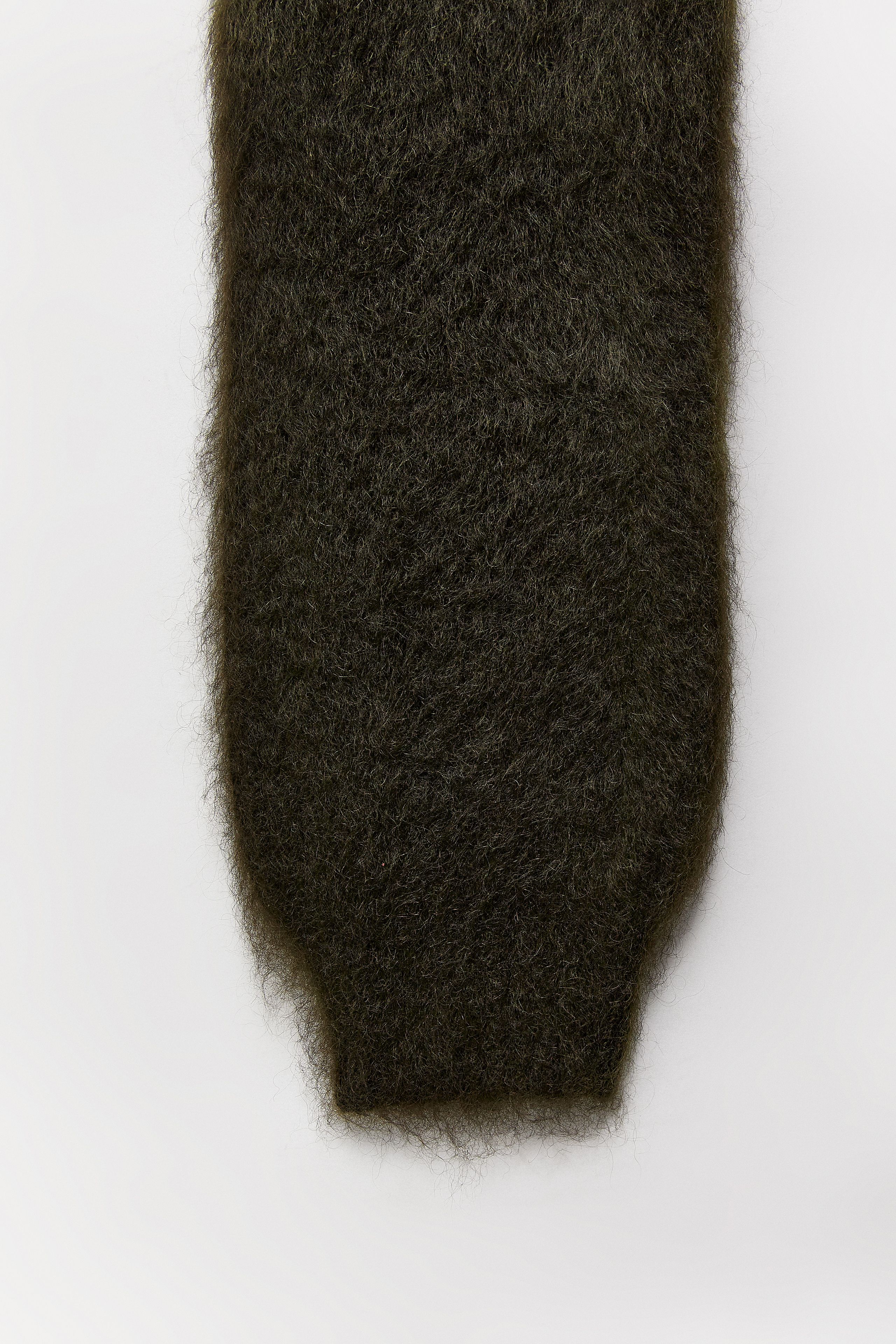 Nivi is a furry styling piece, a front-tie hood and sleeves, brushed to be softer and furrier as you move down the oversized arms. Wearing this is like giving ourselves a warm, hairy mohair embrace. Soft self-love.
