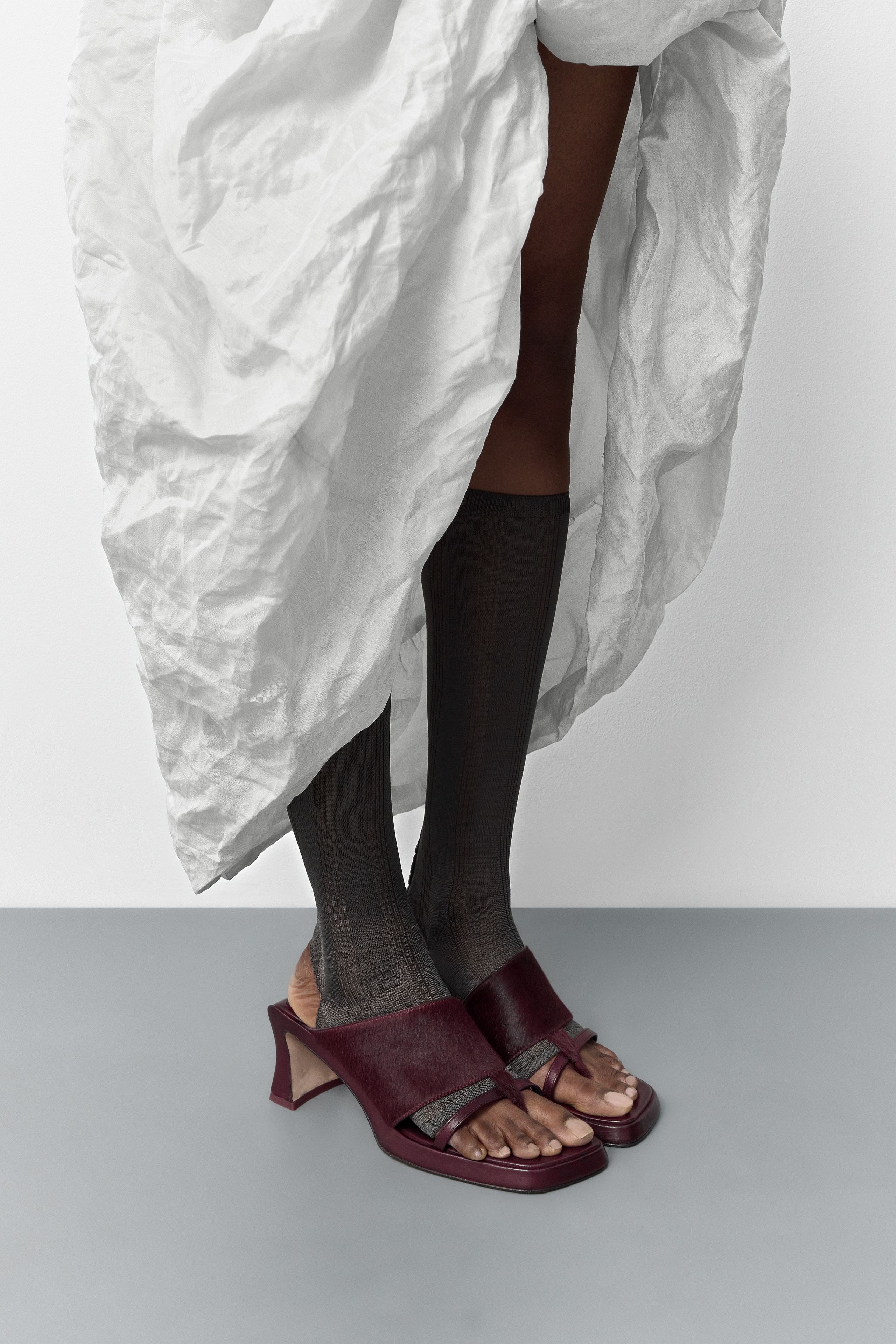 +4Trisha SandalsBurgundy Ponyhair Leather€425ColorTrisha Sandals - Burgundy Ponyhair LeatherTrisha Sandals - Ecru Ponyhair LeatherSelect sizeAdd to bagSize GuideFind in StoreProduct InfoDescriptionVegetable tan cow leather liningUltra-cushioned memory foam inner soleRubber-invected toeHeel Height: 5.5 cm*Includes a replacement pair of heel caps in the shoe box.MaterialsShipping & returnsLoading...